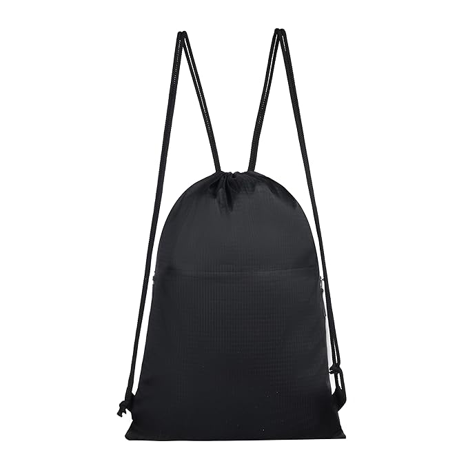 Elegant Drawstring Backpack with Zip Pocket – A lightweight, reusable, and foldable bag designed for both kids and adults. Perfect for swim, gym, travel, yoga, and outdoor sports. Features a secure zip pocket, 6L capacity, and can be worn as a crossbody for added comfort and convenience.