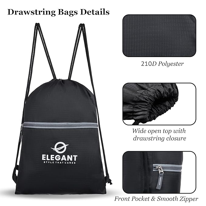 Set of 3 Elegant Drawstring Backpacks – Lightweight, foldable, and reusable bags with secure zip pockets. Perfect for kids and adults for gym, swim, travel, yoga, cycling, sports, school, hiking, camping, and more. 6L capacity in vibrant, stylish, multi-color designs.