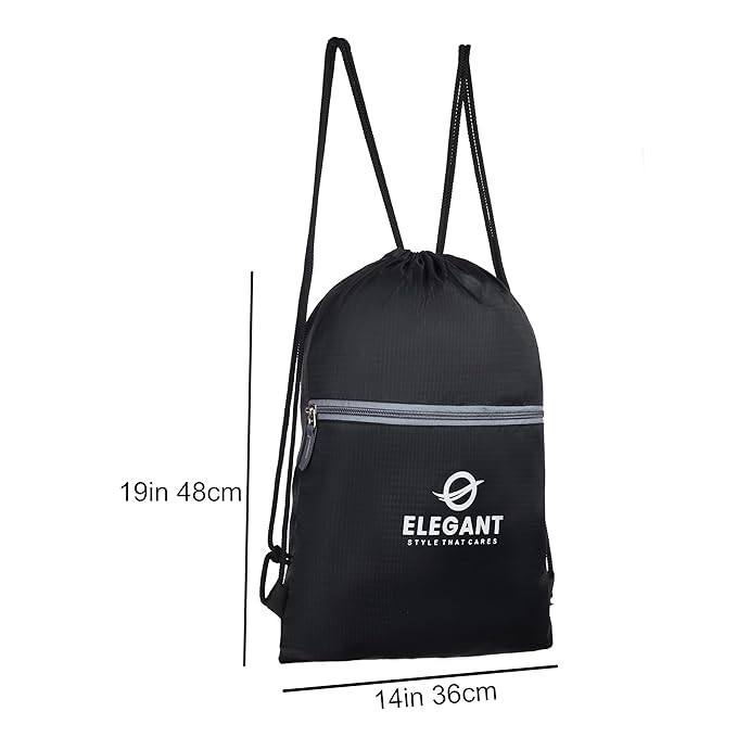 The Elegant Drawstring Backpack is perfect for kids and adults alike. With a 6L capacity, it’s ideal for swim, gym, travel, yoga, and outdoor sports. It features a secure zip pocket, reusable material, and can be worn as a crossbody for added comfort and convenience.