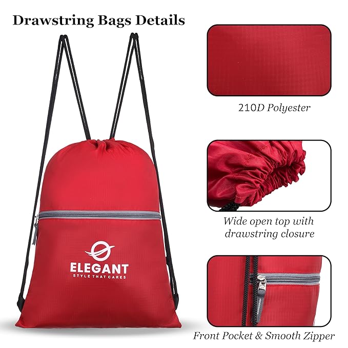 Set of 3 Elegant Drawstring Backpacks – Lightweight, foldable, and reusable bags with secure zip pockets. Perfect for kids and adults for gym, swim, travel, yoga, cycling, sports, school, hiking, camping, and more. 6L capacity in vibrant, stylish, multi-color designs.